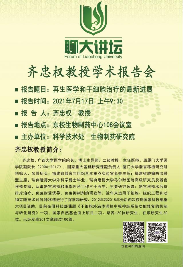 yl6776永利集团官网讲坛——齐忠权教授学术报告