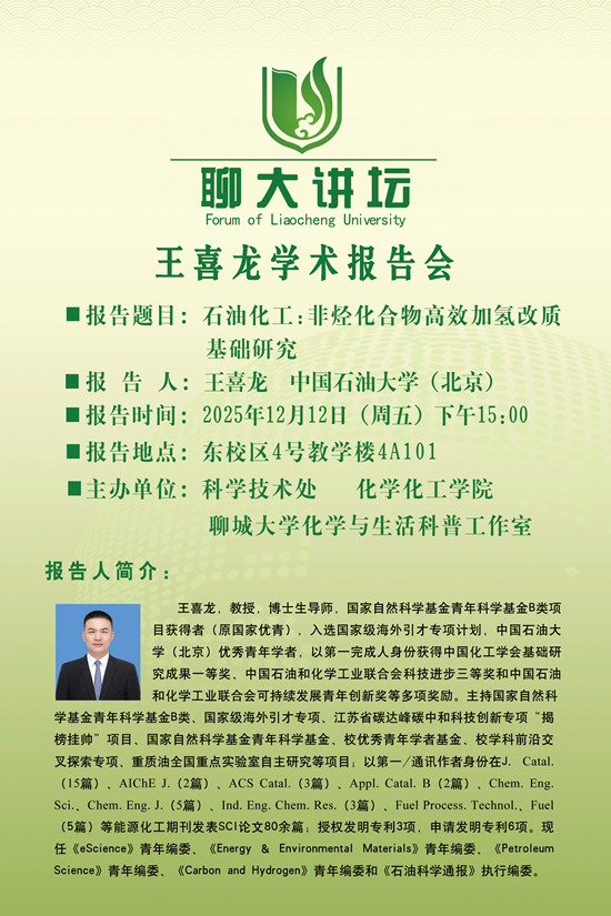 yl6776永利集团官网讲坛——王喜龙教授学术报告会