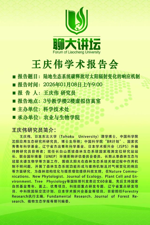 yl6776永利集团官网讲坛——王庆伟研究员学术报告会