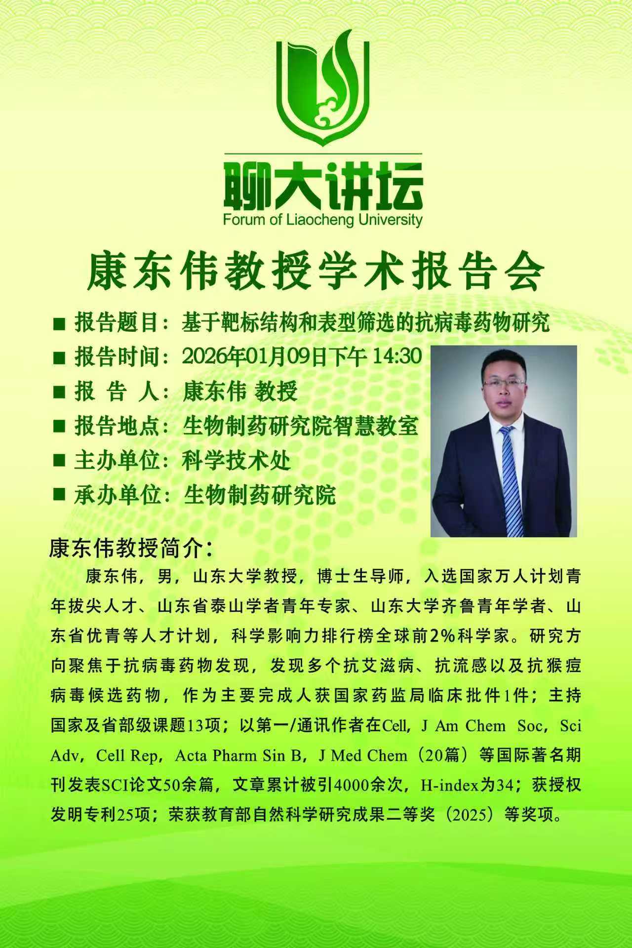 地点 : 生物制药研究院智慧教室