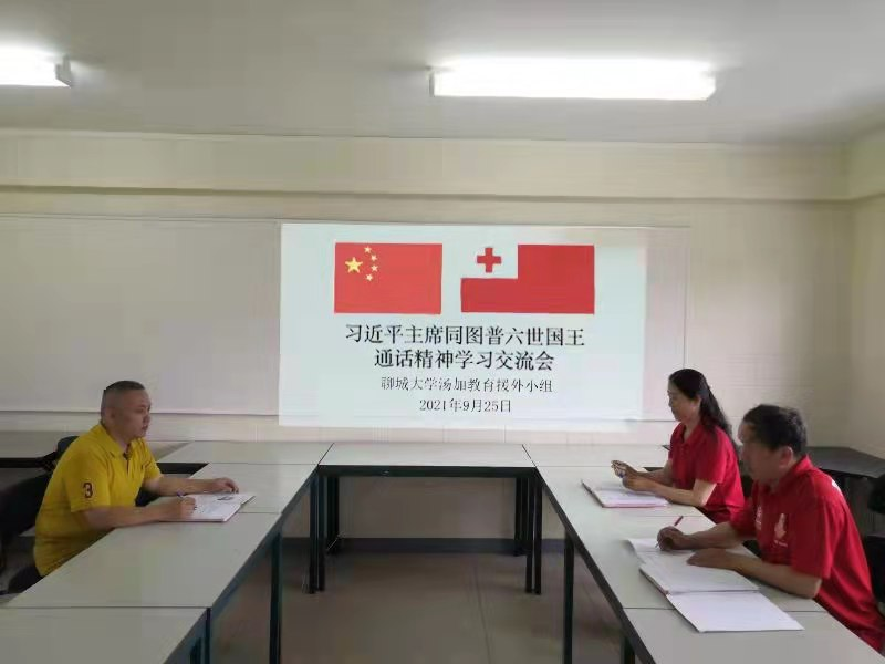 9月25号,我校第二批汤加教育援外教师赵培宝、任爱芝和张剑锋,在汤加工作地集中学习两国元首通话精神,深刻领会通话精神内涵。