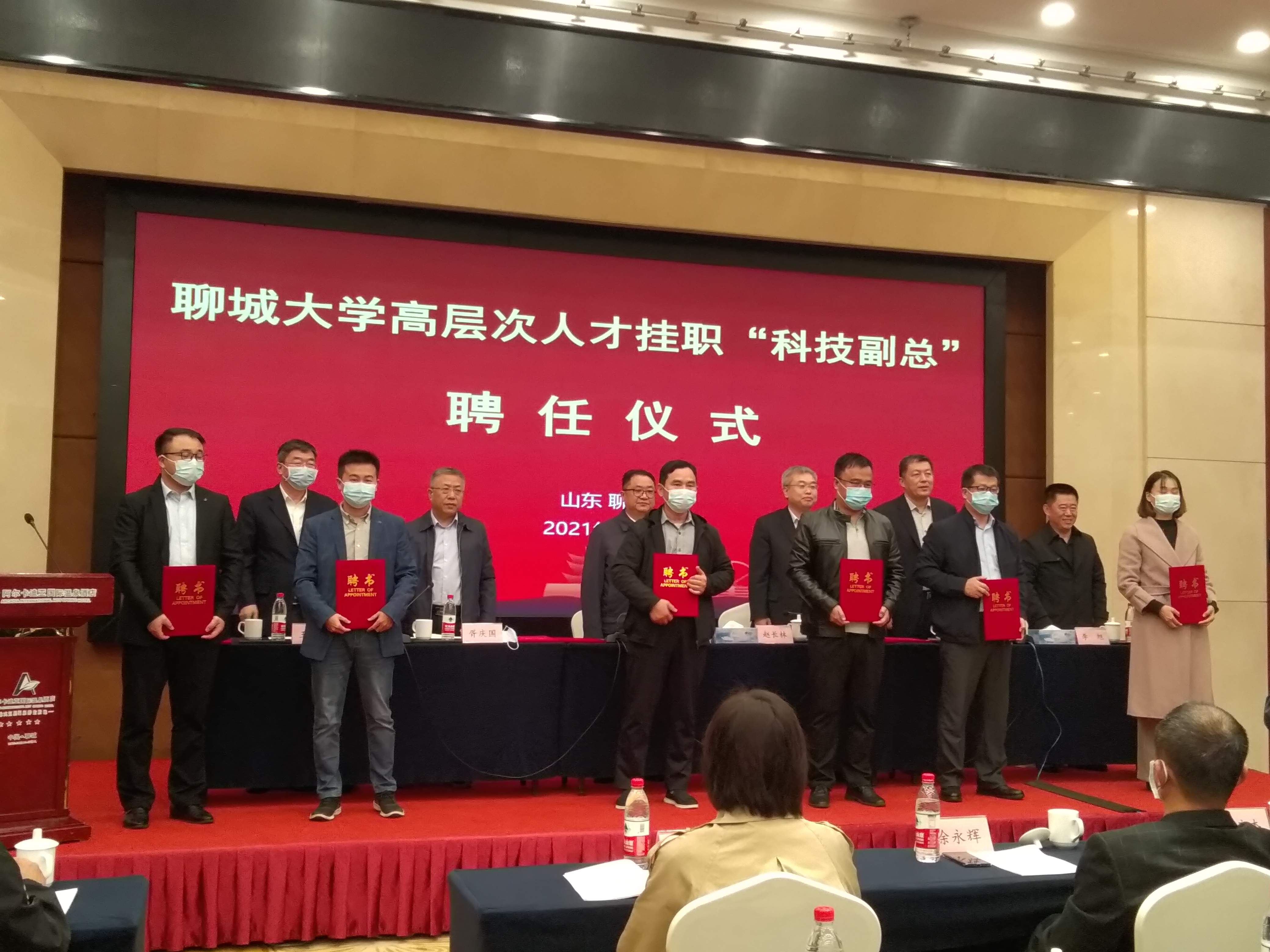 10月26日,yl6776永利集团官网高层次人才挂职“科技副总”聘任仪式在阿尔卡迪亚国际会议中心举行,聊城市人民政府副市长李强、yl6776永利集团官网党委常委、副校长赵长林出席仪式。