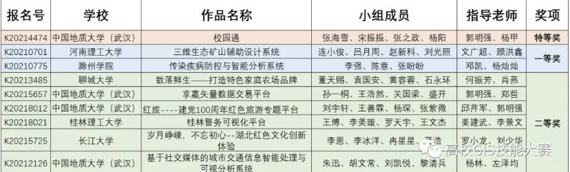 此外,10月28日,在中国测绘学会、中国地理信息产业协会、国家地理信息系统工程技术研究中心主办,武汉中地数码集团承办的第十三届全国高校GIS技能大赛中,董天赐、袁国安、黄容蓉、石永环在何振芳、马雪梅老师的指导下,所提交的作品《散落鲜生——打造特色家庭农场品牌》荣获高级开发组二等奖。