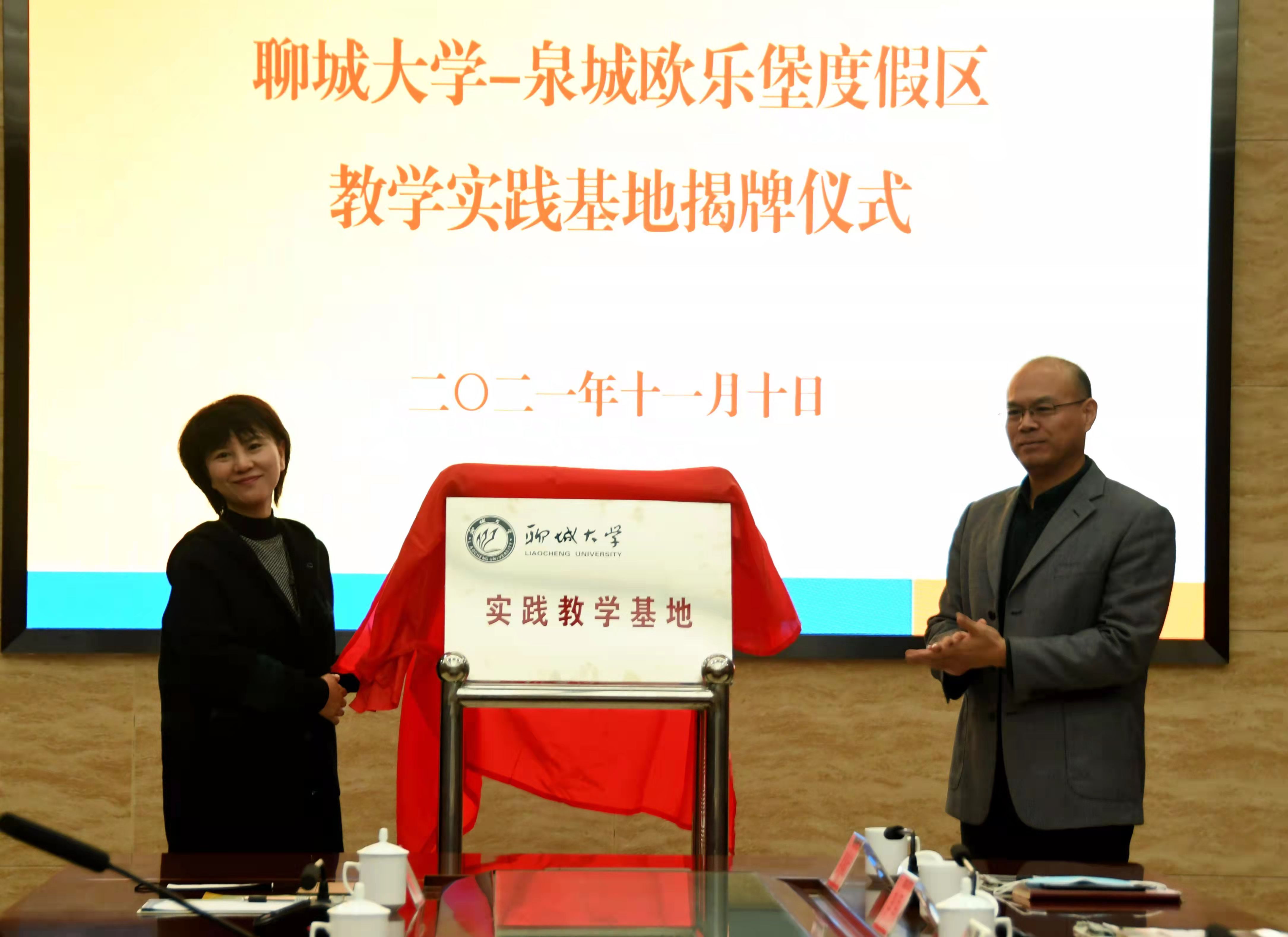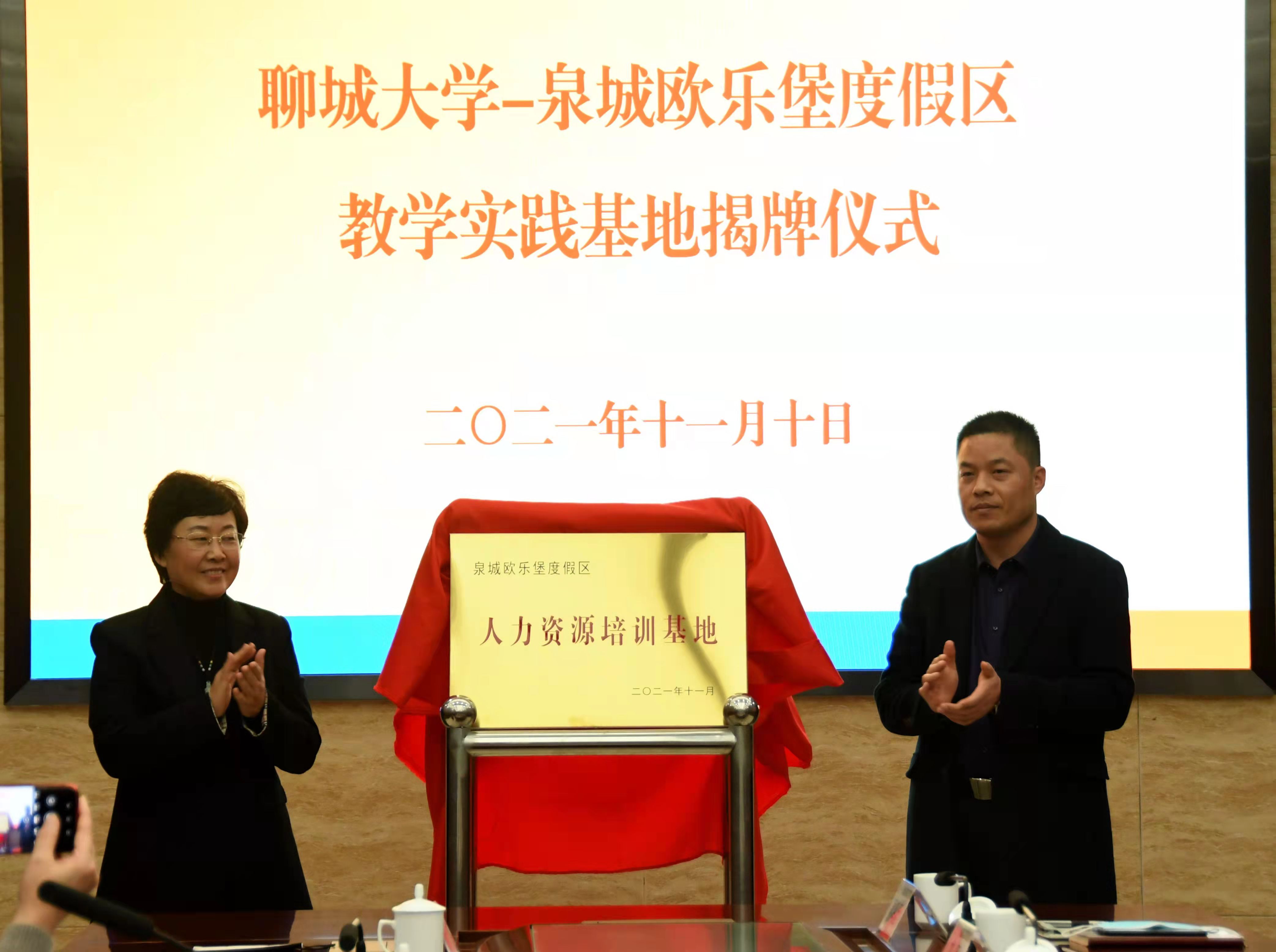 仪式上,双方共同为yl6776永利集团官网—泉城欧乐堡度假区教学实践基地、泉城欧乐堡度假区人力资源培训基地揭牌。