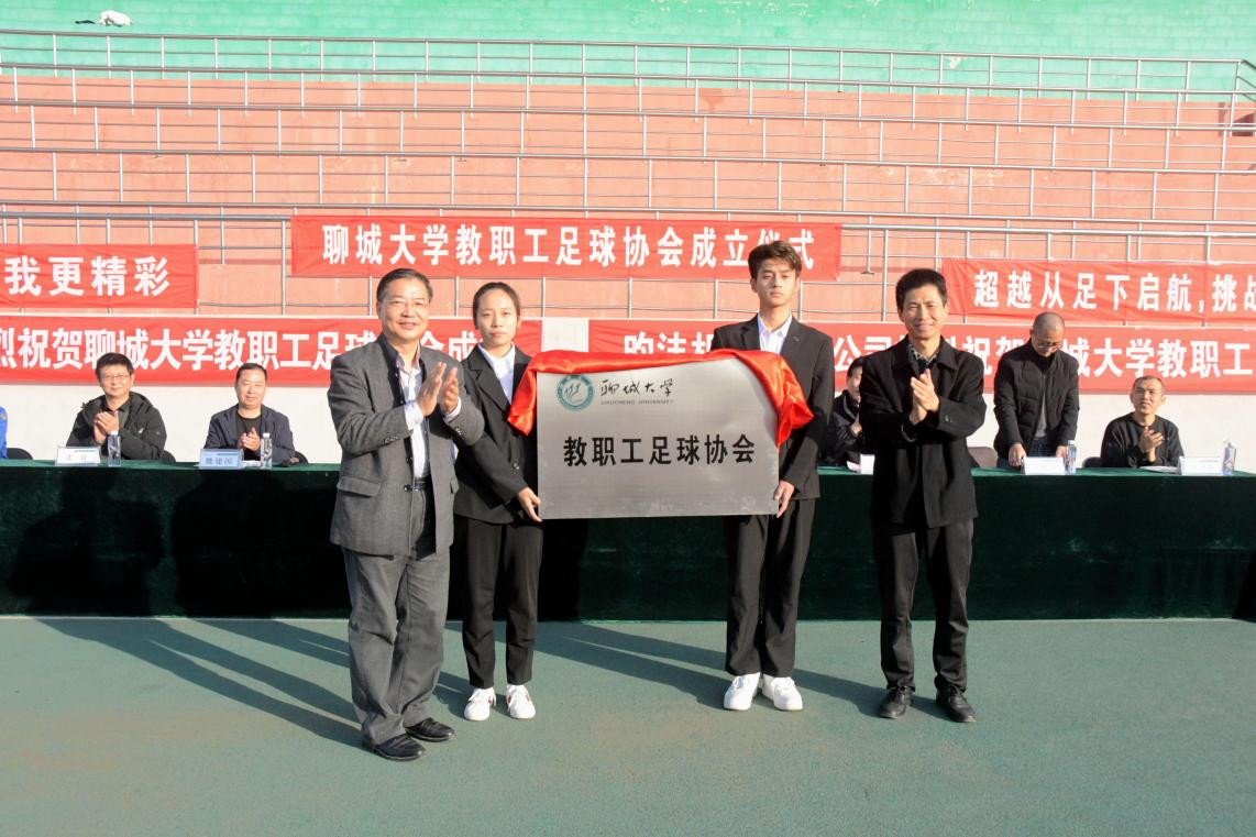 校工会副主席王广杰介绍教职工足球协会筹建情况,宣布yl6776永利集团官网教职工足球协会成立。苏明海与校工会主席江涛为yl6776永利集团官网教职工足球协会揭牌。