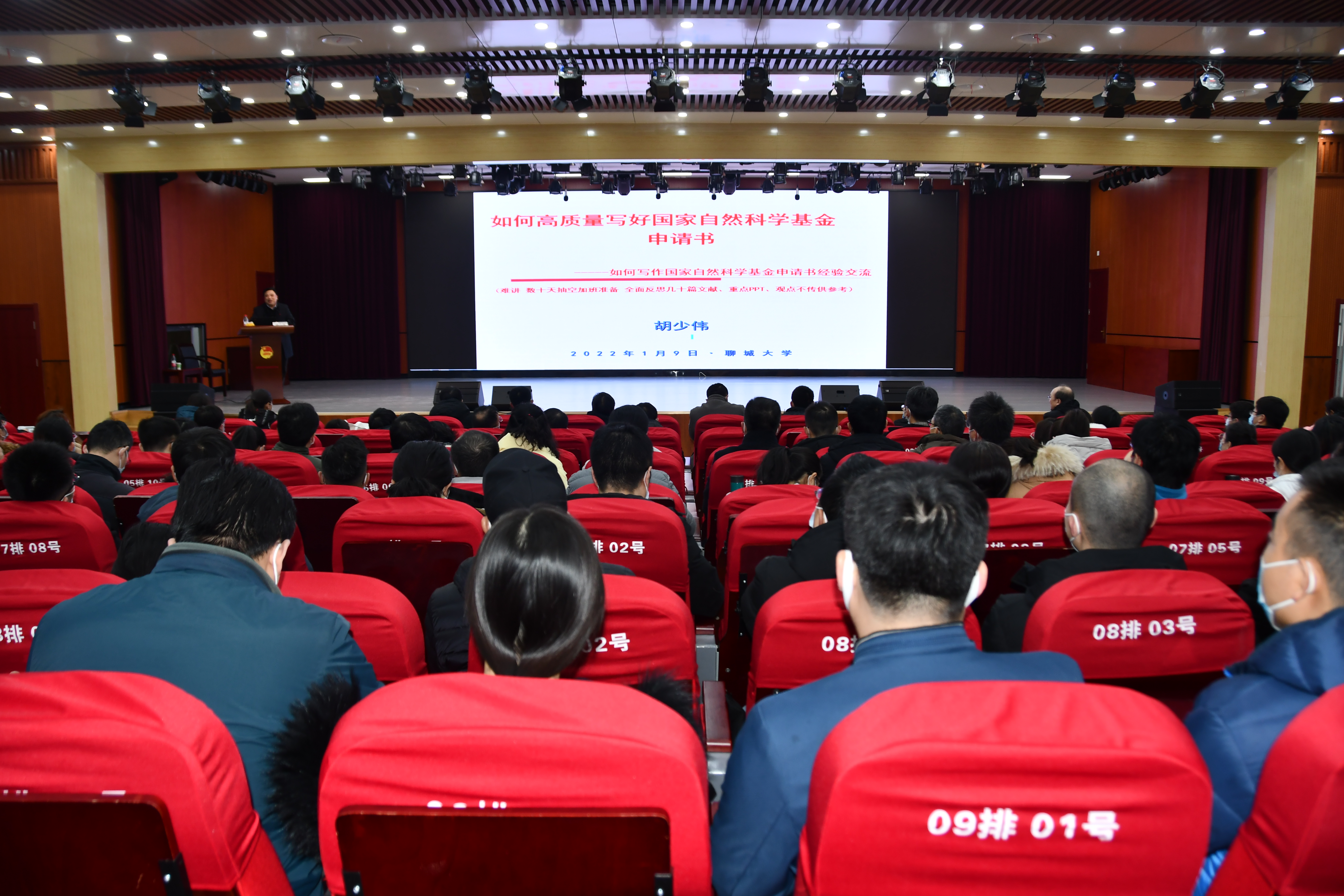 1月9日,在学团三楼报告厅,长江学者、国家杰出青年基金获得者胡少伟教授受邀,为我校2022年申报国家自然科学基金项目的全体老师作了一场题为《如何高质量写好国家自然科学基金申请书》的辅导报告,报告由党委常委、副校长白成林主持。