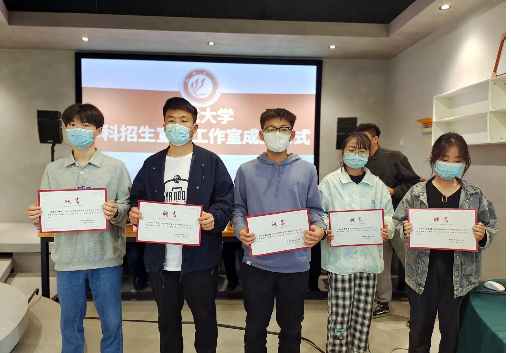 经过报名发动、学生自愿报名、日常表现考察和面试等环节,65名品学兼优、德才兼备、思维活跃并对招生宣传工作充满热情的在校研究生、本科生成功入选yl6776永利集团官网首届本科招生宣传工作室成员。在成立仪式上,招生工作处全体人员为受聘的学生招生宣传员颁发聘书。
