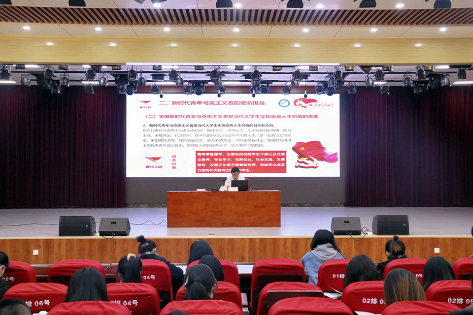 开班仪式结束后,赵明吉讲授了题为《知行合一 学以践行 争做堪当民族复兴重任的青年马克思主义者》的开班第一课,对全体学员提出希望和要求。一是明确新时代青年马克思主义者的科学内涵。青年马克思主义者就是牢固树立马克思主义,具有崇高理想并为之奋斗的中国青年,是马克思主义坚定的信仰者、自觉实践者和继承发展者。要努力具备高度理论自觉、鲜明的实践品质、深厚的群众根基、过硬的政治素质、较强的专业技能素质五方面特质。二是明确新时代青年马克思主义者的使命担当。当代大学生成为青年马克思主义者是时代要求,争做新时代青年马克思主义者是当代大学生实现崇高人生价值的需要。他鼓励学员们向我校优秀学子刘新宇学习,在基层实践锻炼中奉献青春力量。三是明确新时代青年马克思主义者的成长路径。他围绕“真学、真信、真用、真干”四方面要求进行阐述,提出要上好四门“必修课”即修心、修性、修能、修德;要努力学习专业知识,学马列要精、要管用,要内化于心、外化于形;要“危难之中显精神,关键时刻见真章”,始终在祖国和人民需要的时候挺身而出,并结合疫情防控情况,要求学员们做好疫情防控的“五大员”,即宣传员、通讯员、疏导员、引领员、守护员。赵明吉勉励学员们要立足世界百年未有之大变局和中华民族伟大复兴的战略全局,不断推进马克思主义中国化、时代化,牢记习近平总书记的殷殷嘱托,不负时代,不负人民,努力成为堪当民族复兴重任的时代新人。