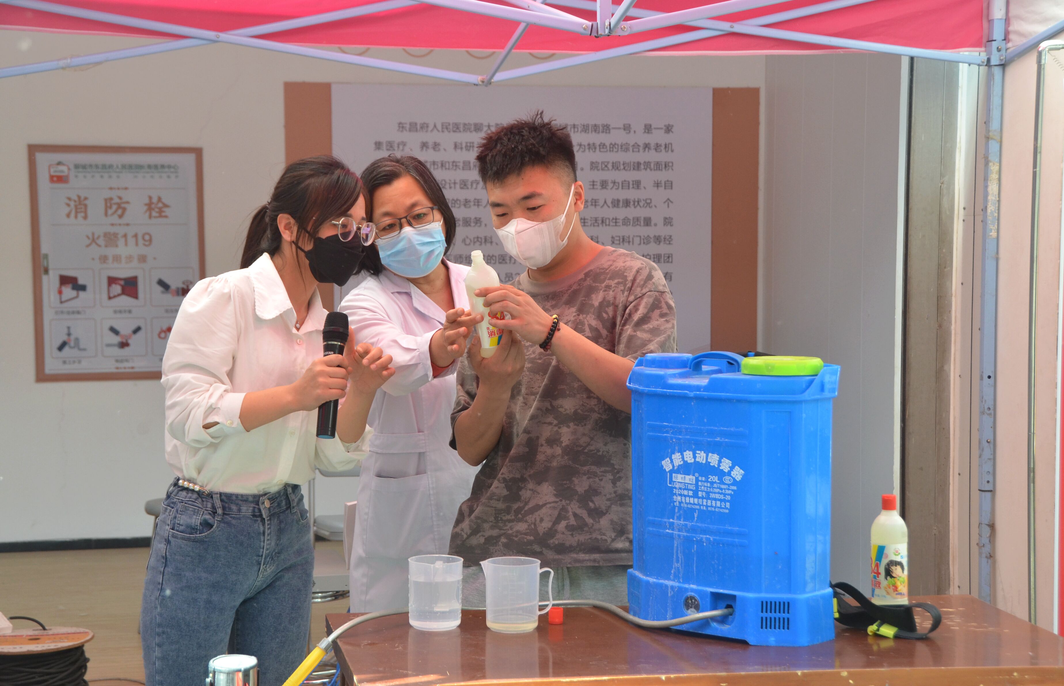 整个培训过程由校医院吕清林主任主持、校医院专业医护人员主讲,通过视频演示、现场操作等方式,对医疗防护和消杀进行了全面系统的指导。主讲人员指出了预防性消毒、随时消毒和终末消毒的区别,详细介绍了对于不同场所不同物品消毒时所需消杀用剂的配比浓度,并帮助消杀工作人员理清了消杀操作的步骤,针对消杀防护服的穿脱进行了细致的教学,明确了不同消杀记录表填写时的注意事项。培训后,部分参训人员进行了消杀喷雾器的实践操作,主讲人就操作过程中遇到的问题进行了纠正解答。