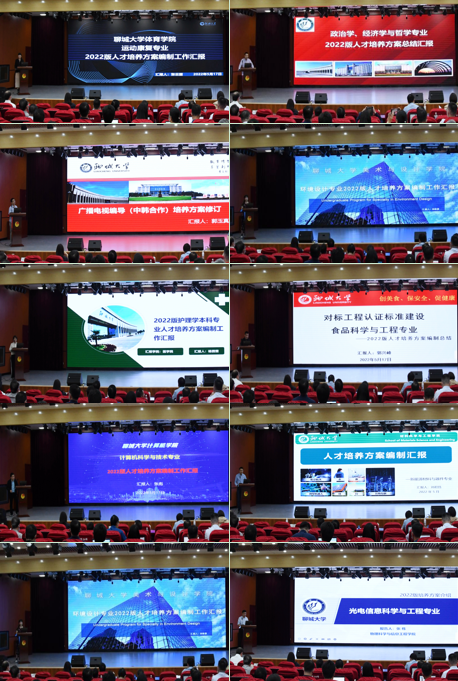 张云丽(运动康复专业)、仲伟通(政治学、经济学与哲学专业)、郭玉真(广播电视编导专业)、刘秀红(标准化工程专业)、刘春景(环境设计专业)、杨茜茜(护理学专业)、郭兴峰(食品科学与工程专业)、张彪(计算机科学与技术专业)、刘君昌(新能源材料与器件专业)、张栋(光电信息科学与工程专业)10位专业负责人围绕人才培养方案修订依据、调研过程、培养目标定位、专业课程体系优化、实践课程设置、特色与优势等内容进行汇报。