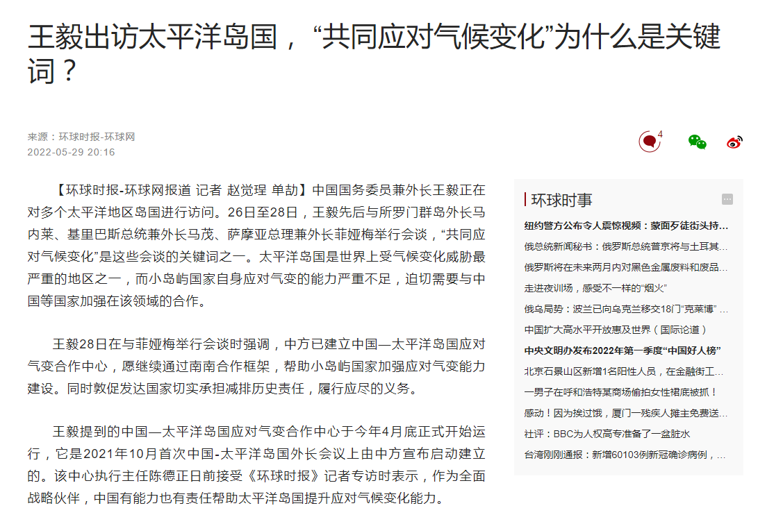 王毅出访太平洋岛国多次提及气变中心 yl6776永利集团官网陈德正教授接受《环球时报》记者专访
