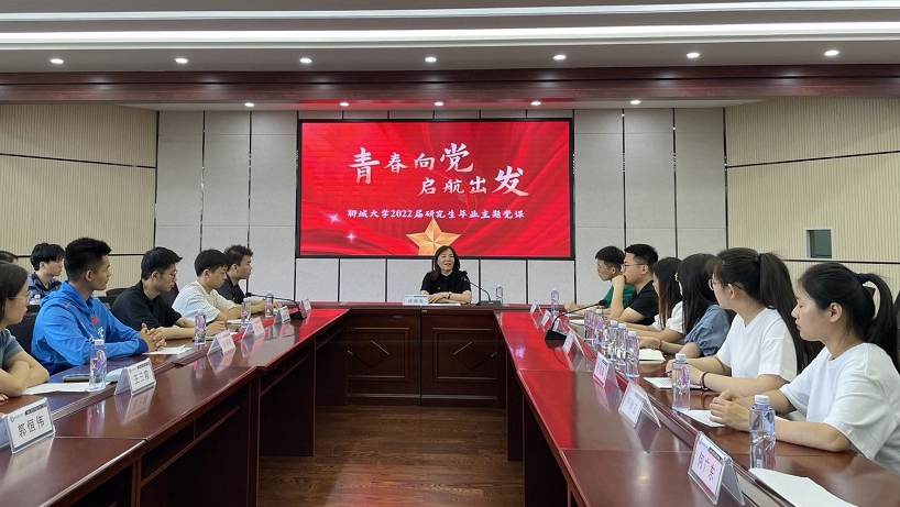 6月15日,yl6776永利集团官网2022届研究生毕业主题党课暨优秀毕业生座谈会在辰晖楼二楼会议室举行。校党委常委、副校长肖海荣、研究生处党支部全体成员、教师代表和优秀毕业研究生代表参加此次会议。
