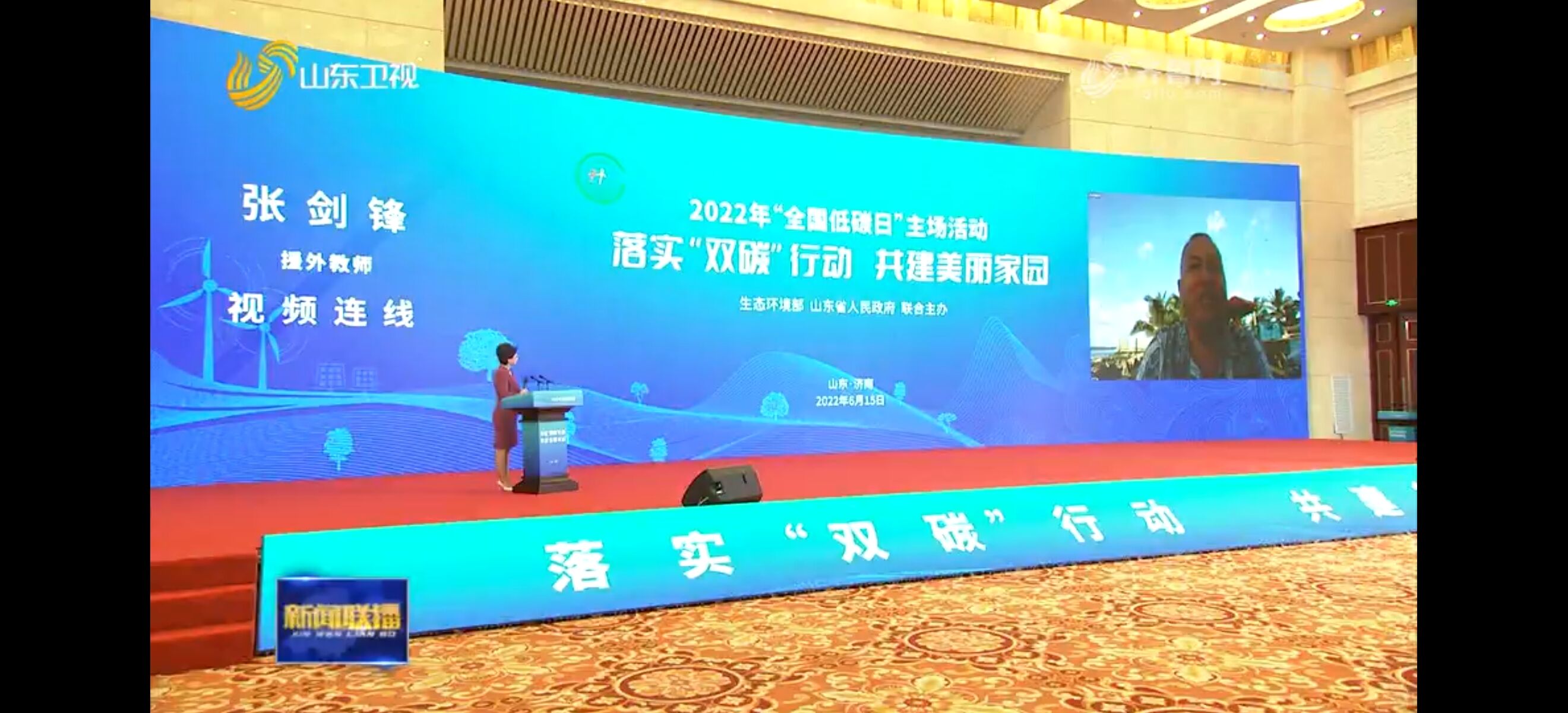 6月15日是第10个“全国低碳日”,由生态环境部、山东省人民政府共同主办的2022年“全国低碳日”主场活动在济南举行。作为中国—太平洋岛国应对气候变化合作中心办公机构所在单位,我校党委副书记、校长王昭风应邀参加活动。活动中,视频连线了正在汤加执行教育援外项目的我校教师张剑锋。