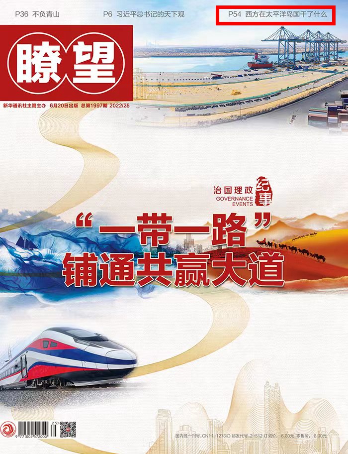 近年来,美国等西方国家在国际社会不断制造谎言抹黑中国,尤其是对中国与太平洋岛国发展友好关系指手画脚,百般阻挠。为澄清是与非,我校太平洋岛国研究中心张勇博士和陈德正教授应新华社主办的《瞭望》新闻周刊的约请,撰写 《西方在太平洋岛国干了什么》一文,作为封面标题文章发表于6月20日出版的《瞭望》2022年第25期“锐观察”专栏。