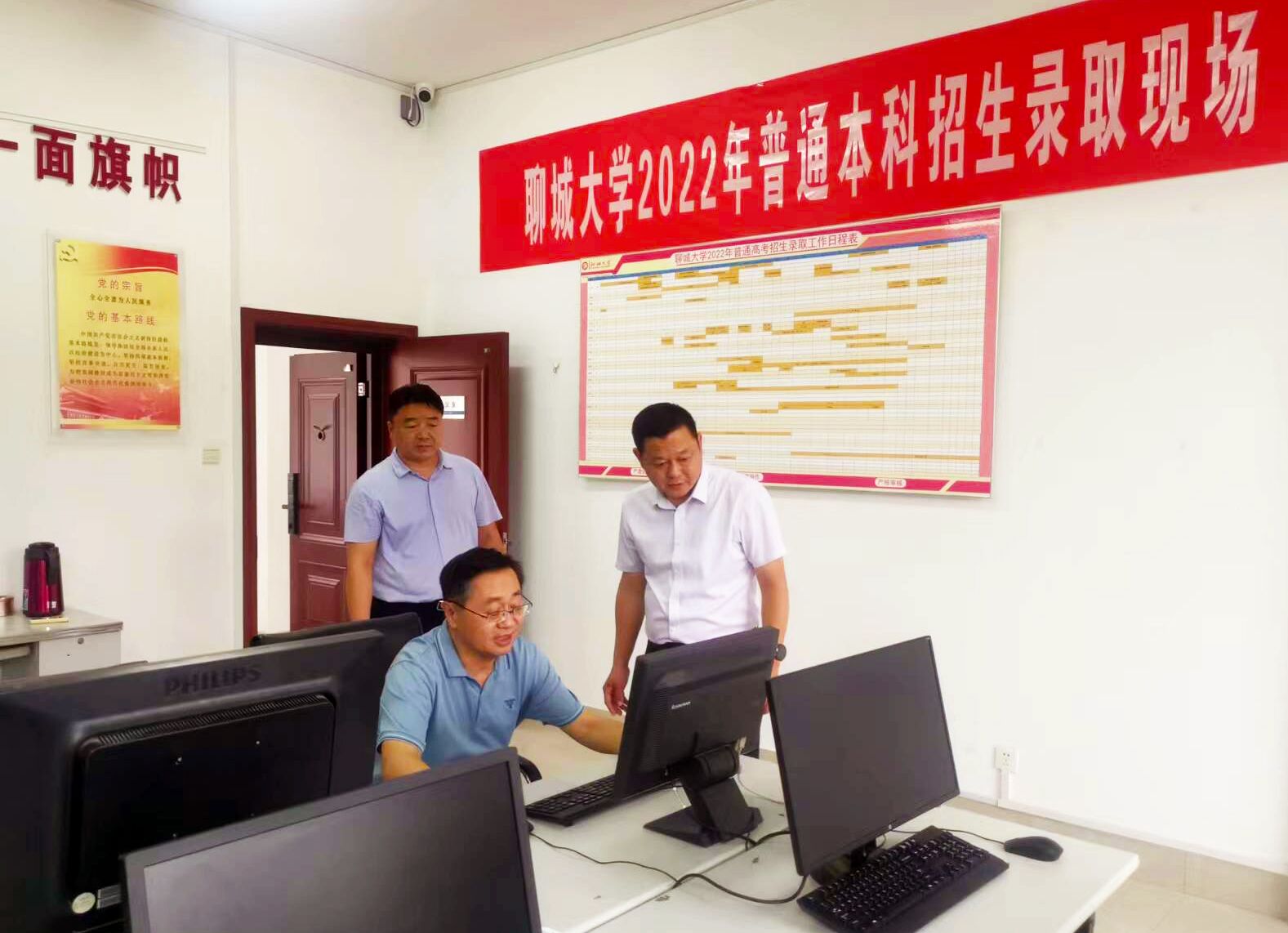 近日,党委书记关延平,党委副书记、校长王昭风在党委常委、副校长赵明吉陪同下,分别到招生工作处检查指导2022年普通高考录取工作,看望慰问招生一线工作人员并听取录取工作汇报。