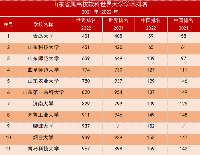8月15日,全球著名高等教育评价机构软科正式发布“2022软科世界大学学术排名”,本次发布的是处于世界领先的前1000所大学。中国内地共有163所大学上榜。我校位列世界第937位,中国第152位,排在青岛大学、山东科技大学、山东师范大学、曲阜师范大学、山东农业大学、山东第一医科大学、济南大学、齐鲁工业大学等高校之后,列省属高校第9位,首次跻身软科世界大学学术排名前1000强。