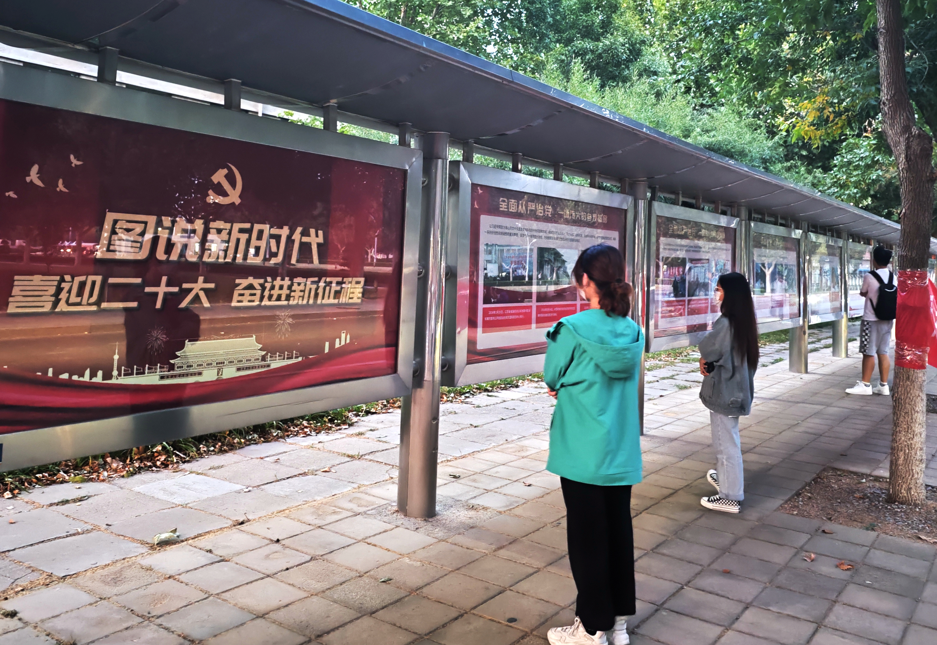 9月21日,“图说新时代——喜迎二十大,奋进新征程”主题展览在我校东西校区宣传栏同时上线,吸引了众多师生驻足观看。