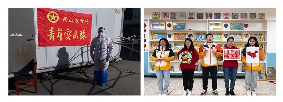 青春喜迎二十大,强国有我西部行。我校西部计划志愿者扎根西部、奉献青春,在当地团组织的领导下,积极投入疫情防控一线,参与核酸检测、社区执勤、物资配送等工作。yl6776永利集团官网第24届研究生支教团在新疆生产建设兵团、新疆英吉沙县、陕西富平县积极开展“欢度国庆节 喜迎二十大”系列主题活动,研究生支教团成员带领学生们通过剪纸、泥塑、手绘中华民族传统手工艺品、创作文化墙等活动,增强了同学们对传统文化的认同感和自豪感,表达对祖国母亲的深深祝福。