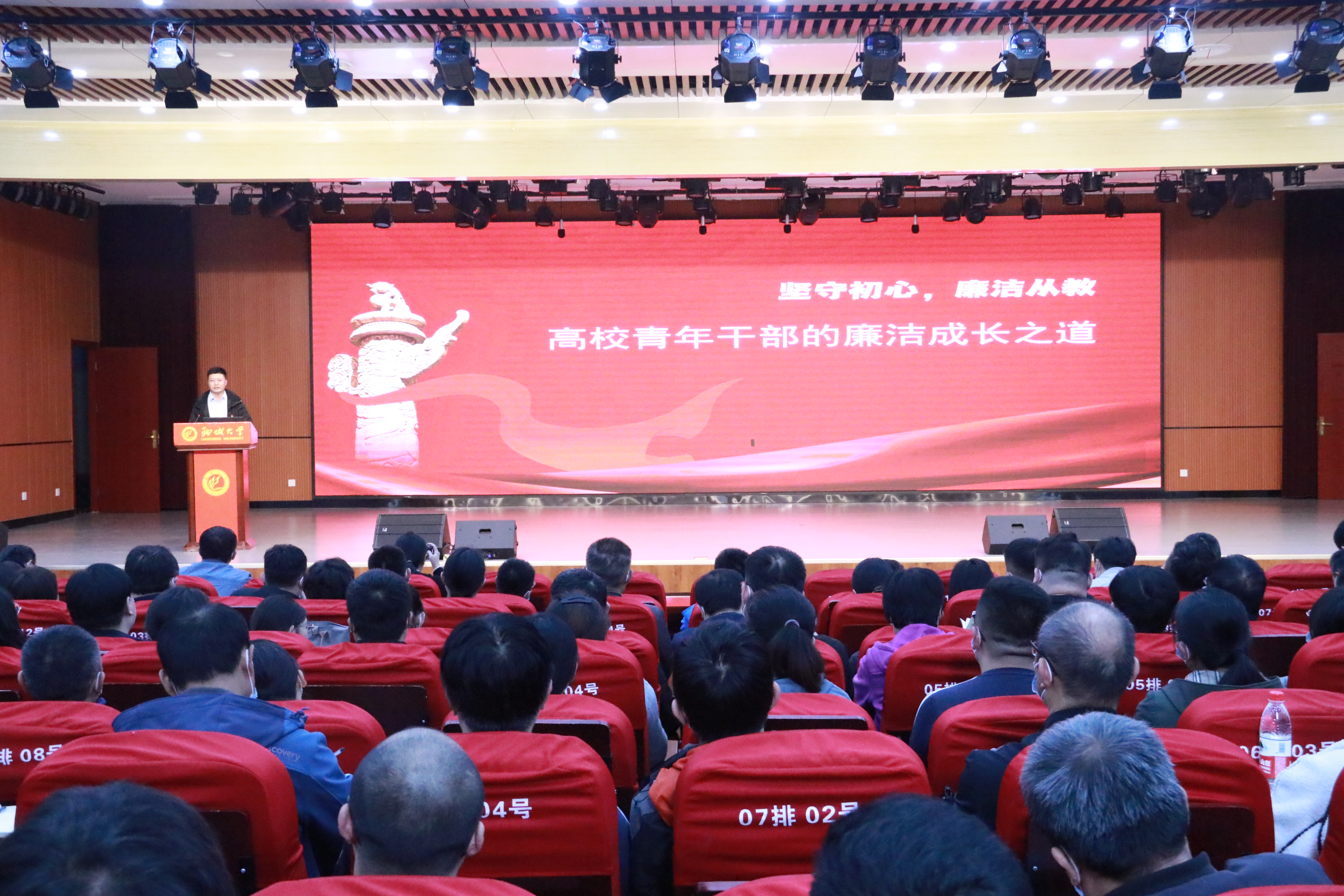 为深入贯彻落实习近平总书记关于加强干部教育管理监督的重要论述精神,进一步增强干部廉洁自律意识、提高拒腐防变能力,护航干部健康成长,10月14日下午,学校在晨晖楼三楼报告厅举办“青廉课堂”暨干部警示教育会,对有关中层干部和科级管理人员开展集中廉政警示教育。