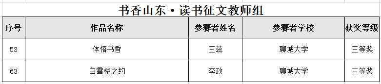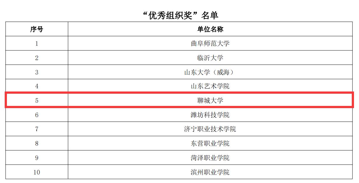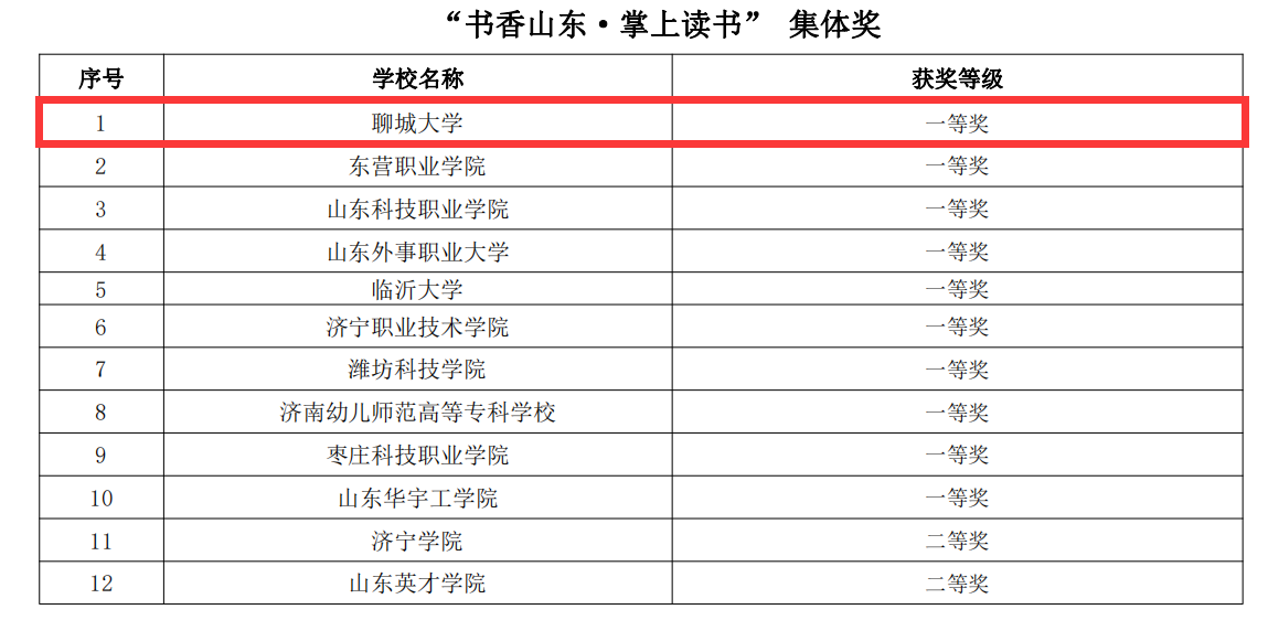 近日,由山东省委宣传部指导,山东省教育厅主办的“山东省高校师生‘奋进新征程 建功新时代’阅读活动”圆满落幕。我校师生在“书香山东·掌上读书”“书香山东·读书征文”“书香山东·经典朗读”三个子活动中均表现突出,斩获佳绩,共获一等奖9项,二等奖4项,三等奖3项。学校荣获“优秀组织奖”“书香山东·掌上读书”集体奖一等奖。