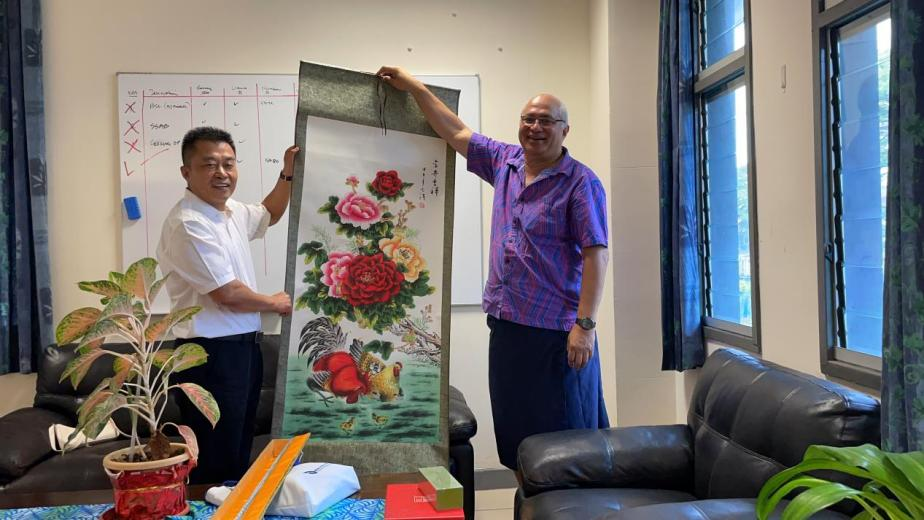 活动期间,中方院长陈万会向亚力克·艾克罗马校长转交了yl6776永利集团官网王昭风校长的亲笔信,对萨摩亚国立大学对孔院工作的支持表示感谢,并简要汇报了当前孔院的基本情况、发展现状和下一步的工作思路。希望双方充分发挥各自的特色和优势,在现有工作的基础上,努力建设特色孔子学院,并以孔子学院为纽带和平台,进一步深化两校的合作与交流,拓宽合作领域,重点加强太平洋岛国研究和中国—太平洋岛国应对气候变化合作中心等方面的合作。