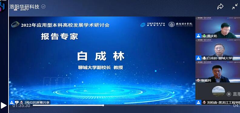 10月30日,中国高等教育学会院校研究分会与洛阳理工学院共同举办的2022年应用型本科高校发展学术研讨会在洛阳理工学院以线上线下相结合的形式召开。600余所高校的2000余名师生注册参加会议,2万余人收看会议直播。我校党委常委、副校长白成林应邀作论坛报告。