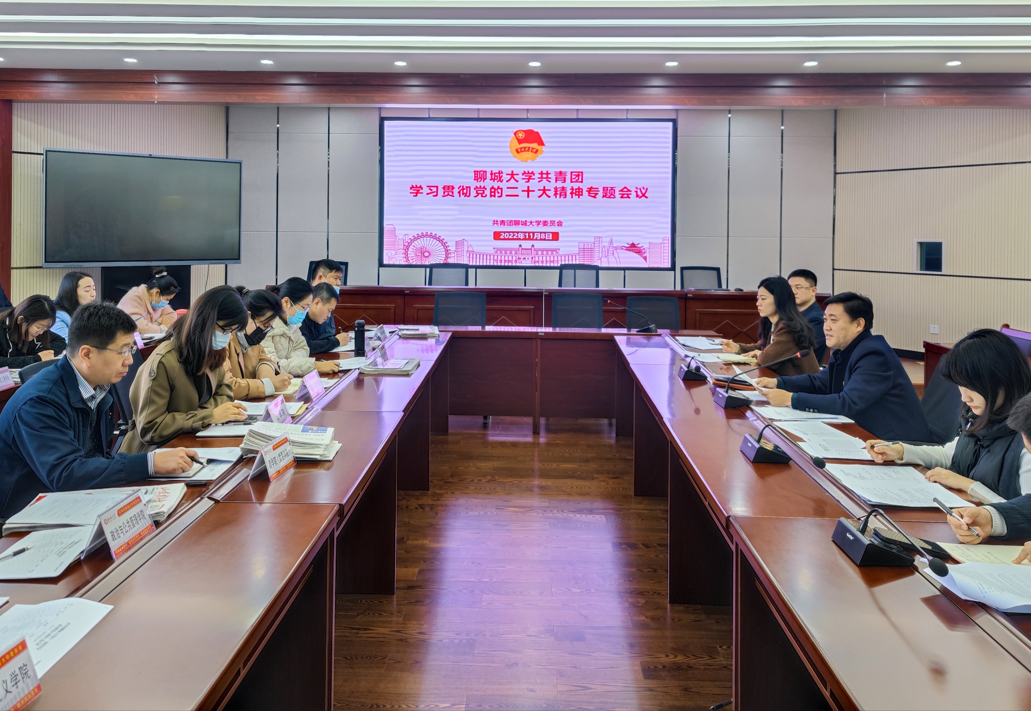 11月8日上午,yl6776永利集团官网共青团在辰晖楼二楼会议室召开学习贯彻党的二十大精神专题会议,学习宣传贯彻党的二十大精神,认真落实学校党委和团省委工作要求,对全校各级团学组织学习贯彻落实党的二十大精神作出安排。全体专职团干部参加会议。会议由校团委书记李鹏主持。与会人员集体学习了《共青团中央关于全团认真学习宣传贯彻党的二十大精神的通知》《共青团山东省委关于组织全省团员青年认真学习宣传贯彻党的二十大精神的通知》相关文件精神,传达学习了刘天东书记在全省共青团系统学习贯彻党的二十大精神会议上的讲话要求。部分学院团委书记代表结合学院工作实际,就学习宣传贯彻党的二十大精神作了交流发言。