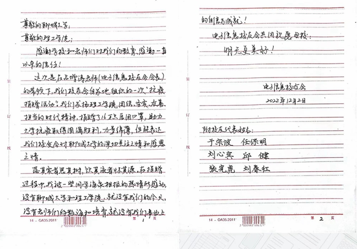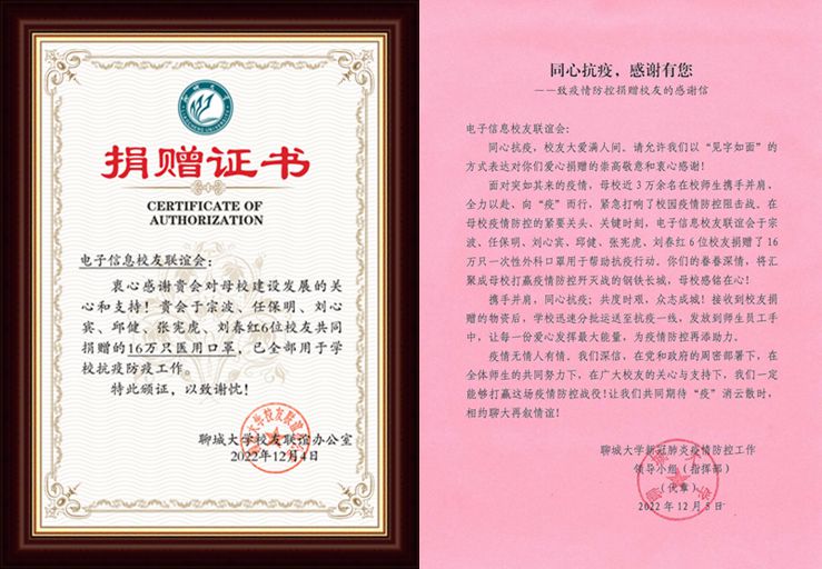 突如其来的新冠疫情形势严峻复杂,全校上下严格管控、精准施策,对校园实行全封闭管理,升级校园防疫措施,这对防控物资保障能力提出了更高的要求。在电子信息校友联谊会会长吕增涛的带领下,校友自发组织了本次“抗疫捐赠活动”,发扬伟大抗疫精神,共克时艰,助力学校疫情防控。
