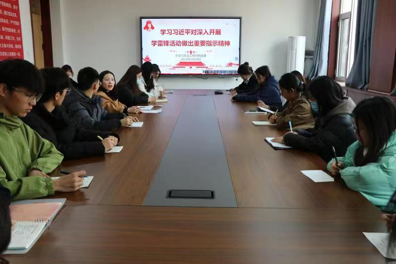 2月28日,我校农学与农业工程学院在3号楼会议室组织学习习近平总书记对深入开展学雷锋活动的重要指示精神,学生党员、学生干部及学生代表参加会议。