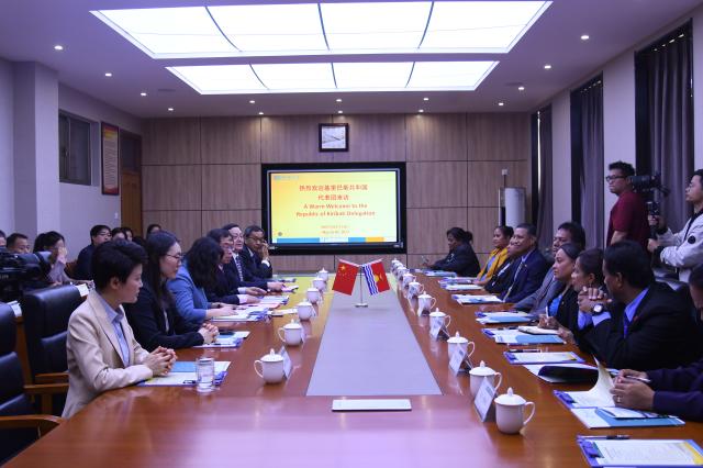 座谈会上,王昭风对布图•巴特里基部长一行的到来表示热烈欢迎。他向代表团介绍了我校的办学历史、学科优势、学风建设和国际合作等情况,回顾了我校对基里巴斯的相关研究成果以及我校教师与基里巴斯人民的深厚渊源。