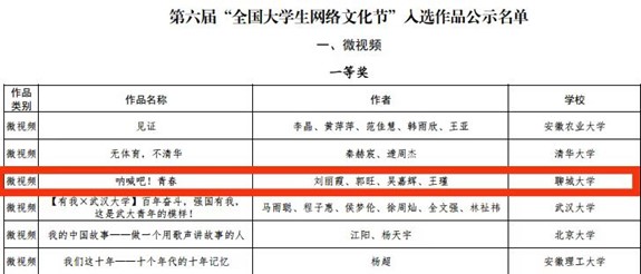 近日,第六届“全国大学生网络文化节”获奖名单公布,学校团委指导、校新青年传媒中心创作的《呐喊吧!青春》荣获微视频类作品一等奖,取得在该项活动中的历史最好成绩。