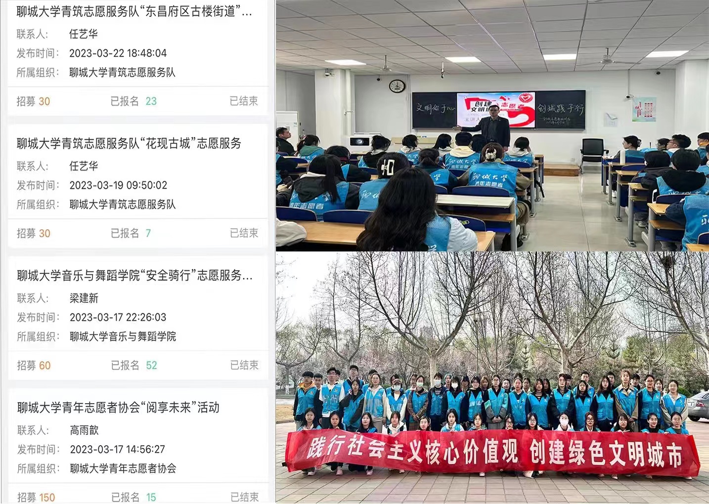 学校重视校地共建,校团委制定发布《yl6776永利集团官网大学生兼职团干部社区实践工作方案(试行)》,选聘23名优秀大学生到东昌府区“报到”,担任兼职团干部,开展社区实践志愿服务;学校深入贯彻落实服务山东战略,推动校地融合发展,重点实施黄河流域专项行动。校团委结合《山东青年助力黄河流域生态保护和高质量发展品牌项目书》要求,组织青年志愿者赴聊城冠县毛白杨林场义务植树基地开展“我为黄河种棵树”植树活动,集中观看学习《鲁西平原黄河故道上的绿色丰碑》影片,实地参观毛白杨林场种质资源库,学习毛白杨培育、养护等相关知识。志愿者挖坑铲土、栽植树苗、填坑整理、扶正压实,用植树行动践行新时代雷锋精神,为黄河流流域专项治理工程添砖加瓦;与聊城市委宣传部联合开展文明创城志愿服务活动,各级青年志愿者在学校周边道路广泛开展文明创城理念宣传、卫生治理、车辆齐停、交通安全提示等志愿服务。学校常青藤志愿者协会、新时代“繁森精神”践行者协会、与美同行志愿服务协会等各类志愿服务组织累计赴聊城市区各县区社区开展志愿服务152场次,校地融合发展,为学生志愿服务拓展了实践平台。