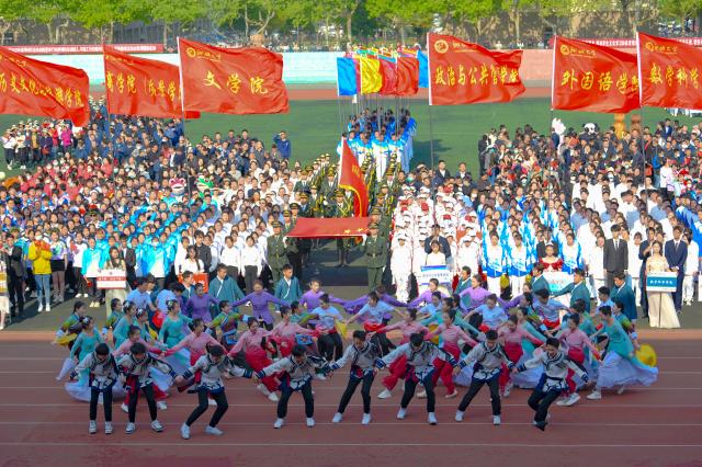 各学院代表方队充满青春活力、富有学院特色的入场式表演,赢得了在场观众的阵阵掌声。音乐与舞蹈学院以及民族班预科生代表方队分别带来了婀娜多姿的民族舞蹈,外国语学院代表方队高举用汉语、英语、日语等五种语言写成的“你好,yl6776永利集团官网”字牌,机械与汽车工程学院代表方队带来的变形金刚吉祥物形象灵动……体育学院代表方队划着龙舟,伴着激越的鼓声而至,每一个雄壮有力的动作都体现了“团结协作、顽强拼搏、不怕困难、激流勇进”的yl6776永利集团官网龙舟精神。
