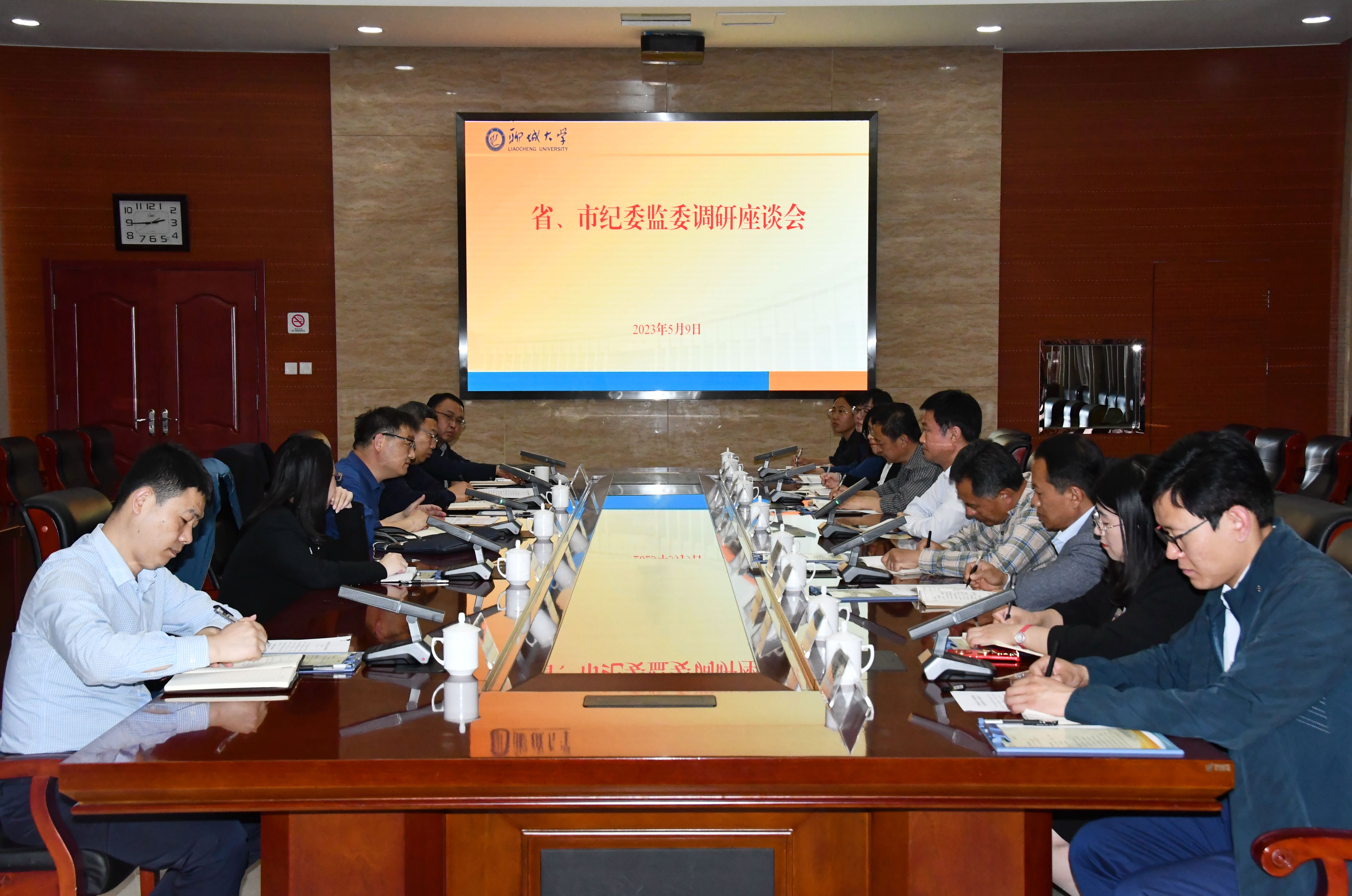 5月9日,山东省纪委监委第四监督检查室主任高广才一行来我校调研指导工作。学校党委副书记、校长王昭风会见了调研组一行。党委常委、纪委书记、省监委驻学校监察专员高秀鹏主持调研座谈会,第四监督检查室副处长级干部王显伦,聊城市纪委副书记、监委副主任李洪强等陪同调研,聊城市纪委监委组织部负责同志、学校纪检监察机构全体人员参加座谈。