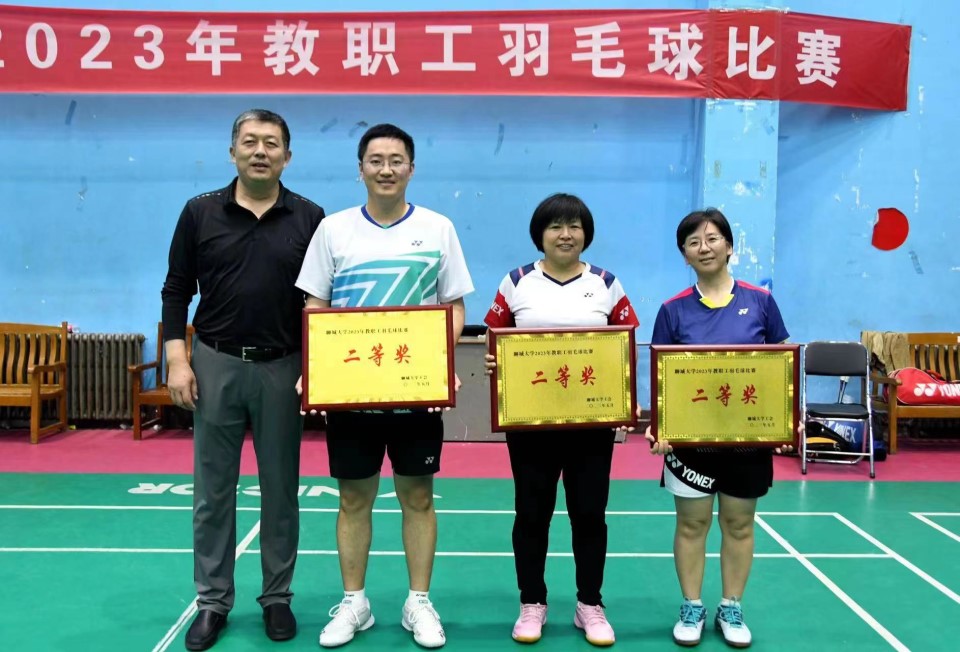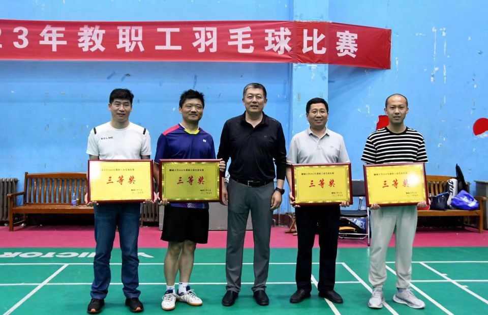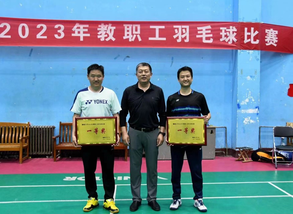5月26日,由校工会主办,校教职工羽毛球协会、体育学院承办的2023年教职工羽毛球比赛在西校区羽毛球馆圆满落幕。校工会主席任忠民为获奖单位颁奖。