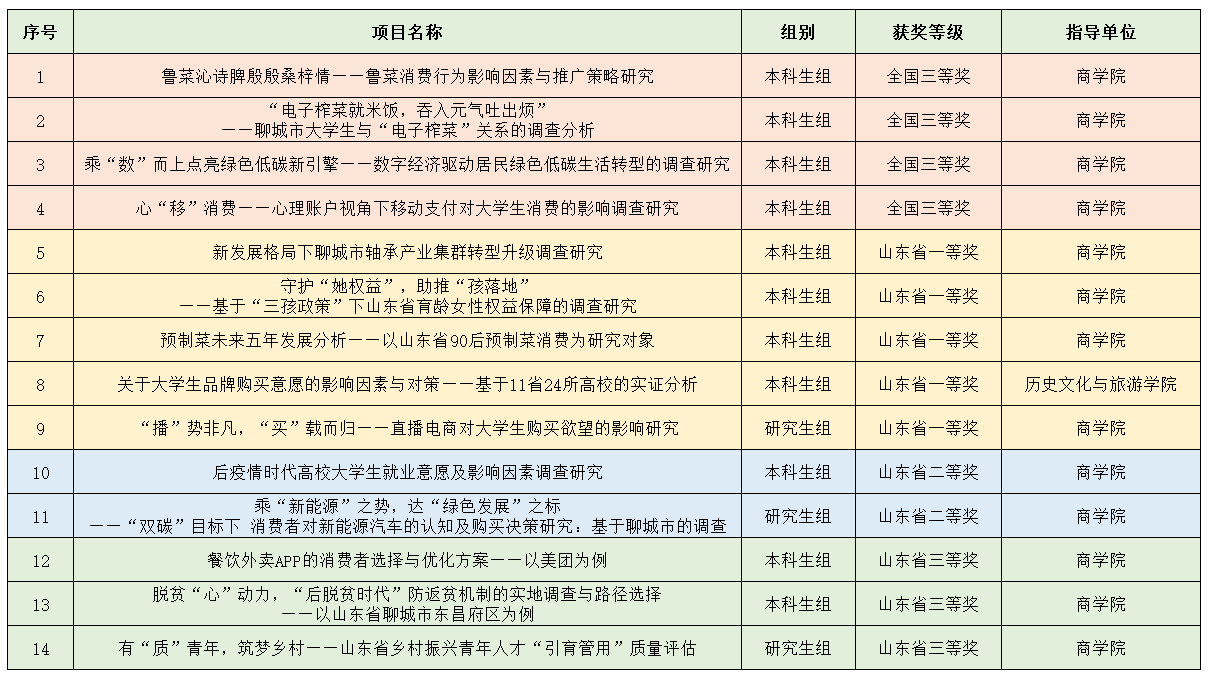 近日,“正大杯”第十三届全国大学生市场调查与分析大赛成绩揭晓,我校共有14个项目获省赛以上奖励,其中商学院4个项目获得全国三等奖,另有10个项目分别获得省级一等奖5项、二等奖2项、三等奖3项,取得了我校在该赛事的最好成绩,国奖数量和质量较往年均有大幅度提升,取得新突破。
