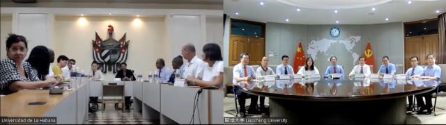 7月12日,yl6776永利集团官网与古巴哈瓦那大学举行共建哈瓦那学院签约仪式。王昭风校长与尼卡多校长在协议书上签字,标志着两校共建中外合作办学机构开启了新篇章。签约仪式由党委副书记房增福主持,会议以网络视频会议方式进行。