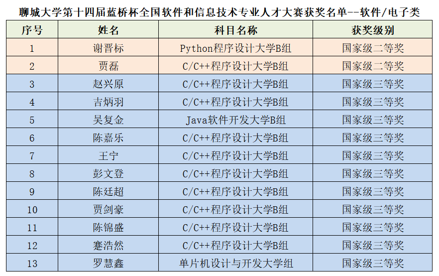 近日,第十四届蓝桥杯全国软件和信息技术专业人才大赛落幕,我校学子共获得国家级奖项17项,其中一等奖2项、二等奖3项、三等奖12项。此外,还有153名同学在省级赛中获奖。我校在两项赛事的国赛中获奖数量和层次上较去年均有大幅提升。