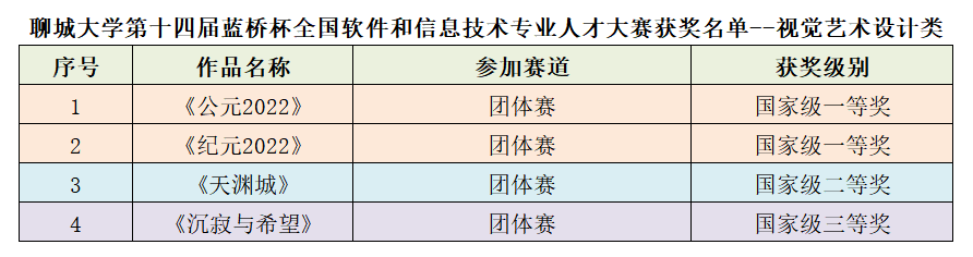 本届大赛参赛选手来自北京大学、清华大学、复旦大学、上海交通大学等1600多所高校,人数多达17.3万。我校学子表现优异,其中在软件电子类赛事中获个人二等奖2项、三等奖11项,在视觉艺术设计类赛事中获团体一等奖2项、二等奖1项、三等奖1项。