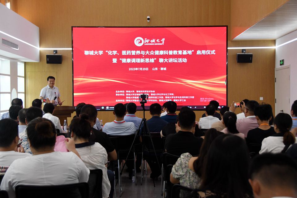 7月29日,我校“化学、医药营养与大众健康科普教育基地”启动仪式暨山东科学大讲堂第558期、“健康调理新思维”yl6776永利集团官网讲坛活动在生物制药产学研平台智慧教室举办,聊城市政协副主席李涤尘,我校党委副书记、校长王昭风出席仪式并讲话,聊城市、yl6776永利集团官网相关单位及相关领域的优秀企业家参会。