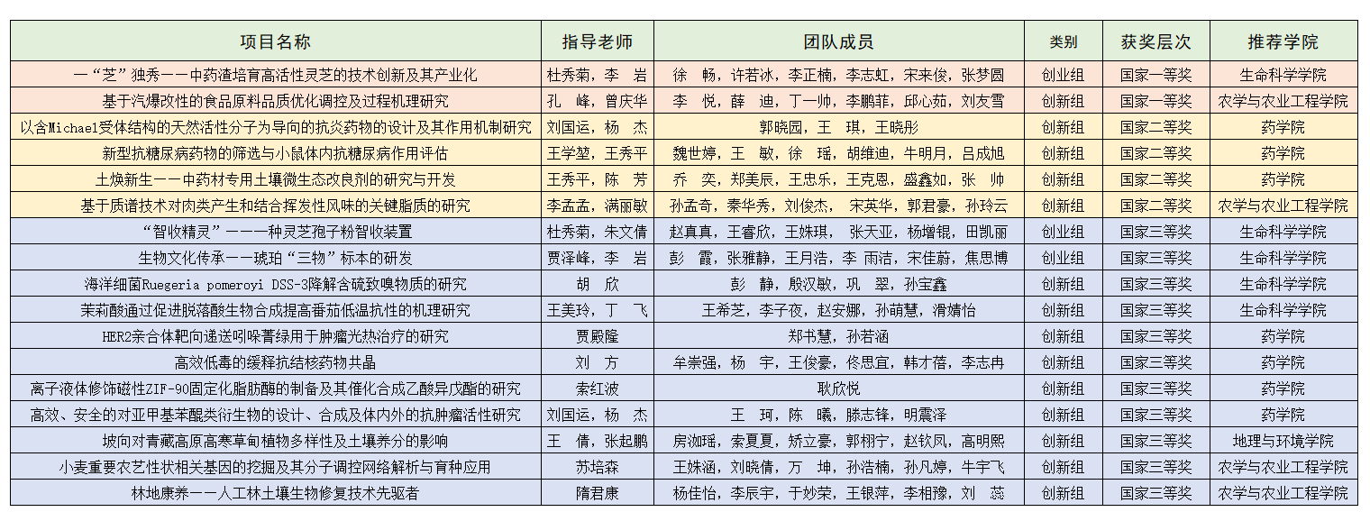 该赛事校赛由创新创业学院主办、生命科学学院承办。学校成立了大赛组委会和专家委员会,加强项目指导和提供赛事保障。各参赛学院主要领导靠前抓、亲自抓,不断打磨提升项目水平。经过校赛、省赛、国赛的层层选拔,最终来自生命科学学院、农学与农业工程学院、药学院、地理与环境学院的17个项目在全国各高校6117个参赛项目中脱颖而出,获得国家级奖项,充分展现了yl6776永利集团官网学子的创新创业能力、专业素养和团队合作精神。