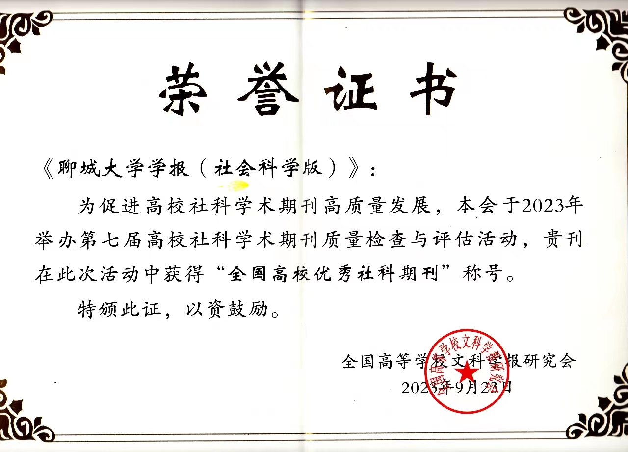 全国高校社科学术期刊质量检查与评估,是经教育部社科司批准的全国期刊界权威评优活动,由国家一级学会、全国高等学校文科学报研究会组织评选,综合考量期刊的政治标准、学术水平、社会影响、编辑质量、出版质量等五项指标,全国参评社科期刊近两千家。此次《yl6776永利集团官网学报(社会科学版)》被评为“全国高校优秀社科期刊”,是学术界、期刊界对学报办刊质量和影响力的充分肯定。