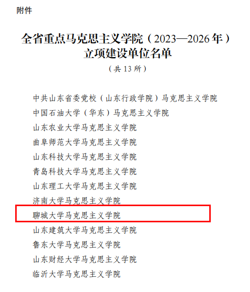 近日,山东省委宣传部、山东省教育厅公布了新一轮山东省重点马克思主义学院(2023—2026)立项建设名单,确定13所马克思主义学院为全省重点马克思主义学院立项建设单位,我校马克思主义学院成功入选。