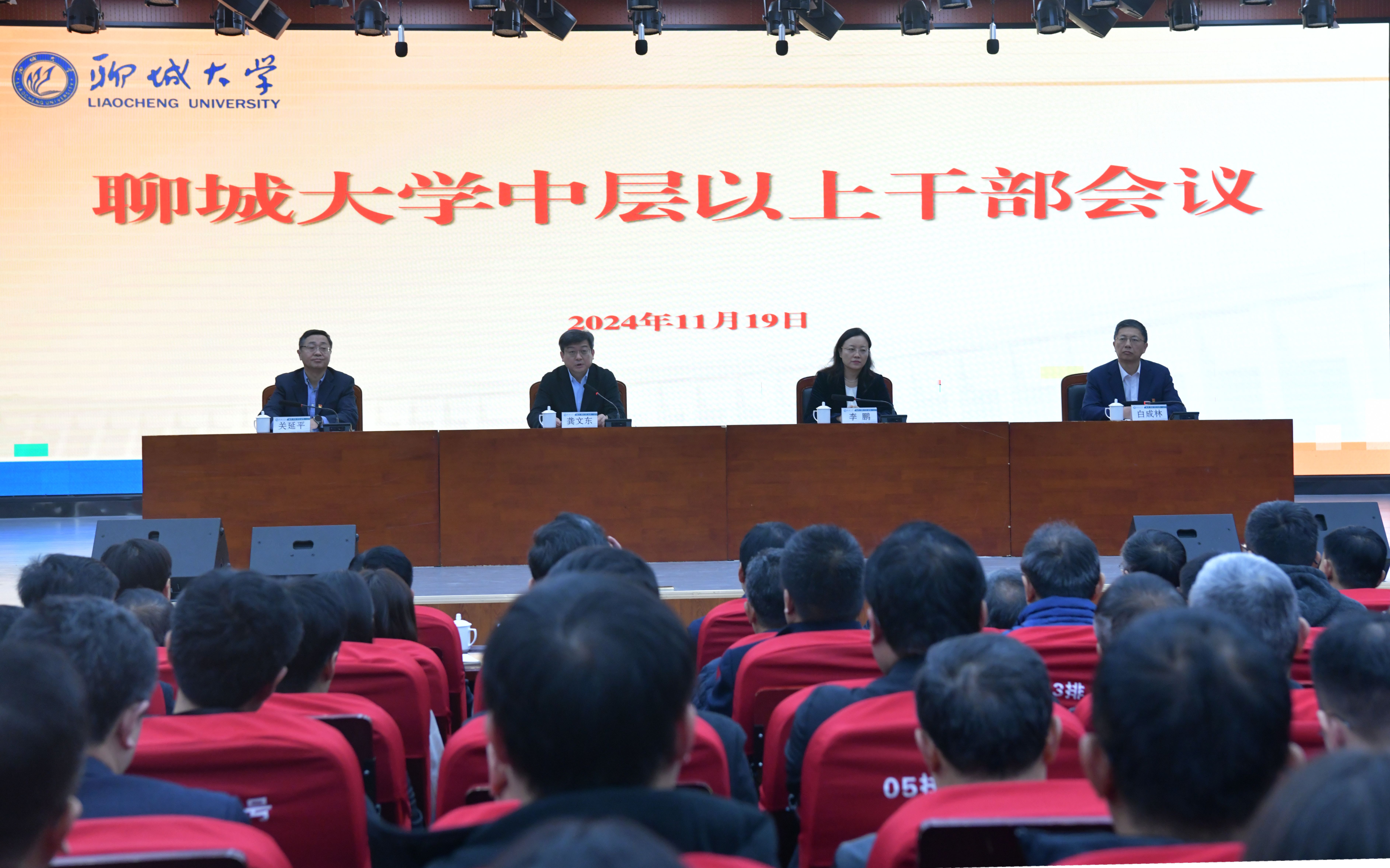 11月19日,学校召开中层以上干部会议,宣布省委关于学校校长任职的决定。省委组织部副部长龚文东宣读省委决定并讲话。省委教育工委委员,省教育厅党组成员、副厅长李鹏出席会议并讲话。会议由校党委书记关延平主持。