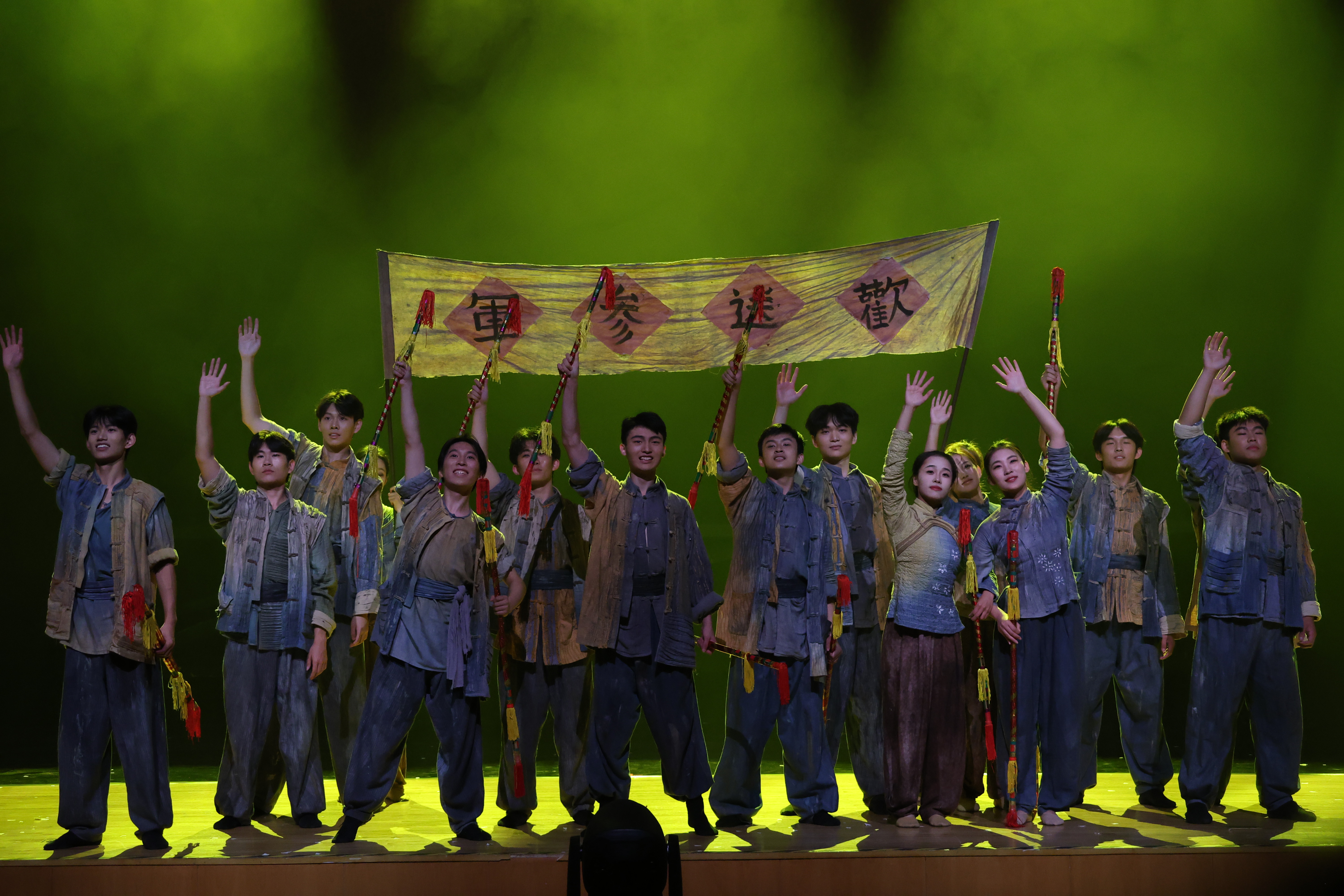 “作为《沂蒙长风》的主演之一,经过刻苦的排练,不仅是对身体的磨砺,更是一场精神的洗礼。”饰演孟林的yl6776永利集团官网音乐与舞蹈学院舞蹈系2023级学生丰世恒动情地说,“当我每一次在舞台上跃起、旋转,我都感觉不是在表演,而是在与那段峥嵘岁月对话。能通过我们的舞姿,将这份力量传递给今天的观众,是所有演员最大的荣幸,也让我们深感责任重大。”