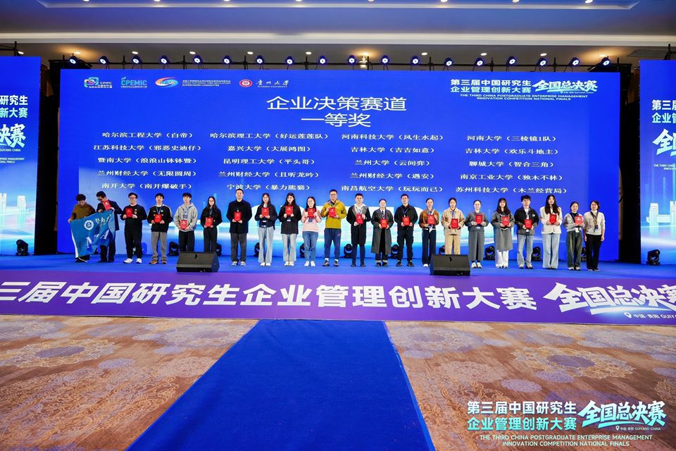 “中国研究生企业管理创新大赛”是“中国研究生创新实践系列大赛”主题赛事之一,由教育部学位管理与研究生教育司指导。大赛启动以来,全国共有321家研究生培养单位的4176支队伍参赛,经前期初赛、复赛的激烈比拼,包含我校“智合三角队”在内的150所高校的411支队伍晋级全国总决赛,角逐国家一等奖(140项)和二等奖(267项)。