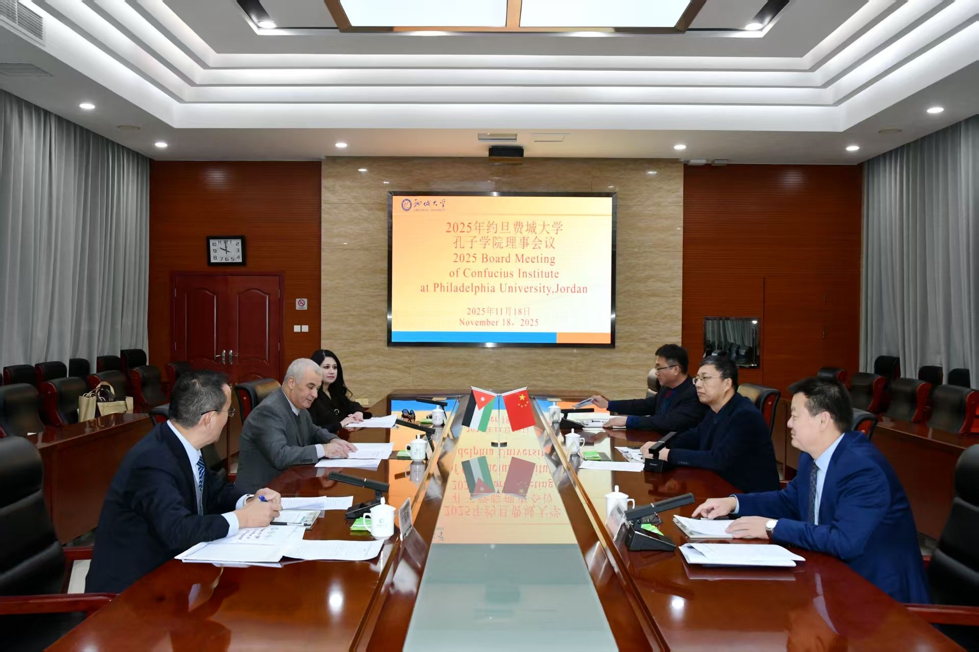 11月18日,约旦费城大学孔子学院2025年度理事会在yl6776永利集团官网顺利召开。费城大学校长阿卜杜拉・贾拉赫,yl6776永利集团官网党委副书记、校长白成林出席会议,会议由国际合作交流处处长张丙元主持。