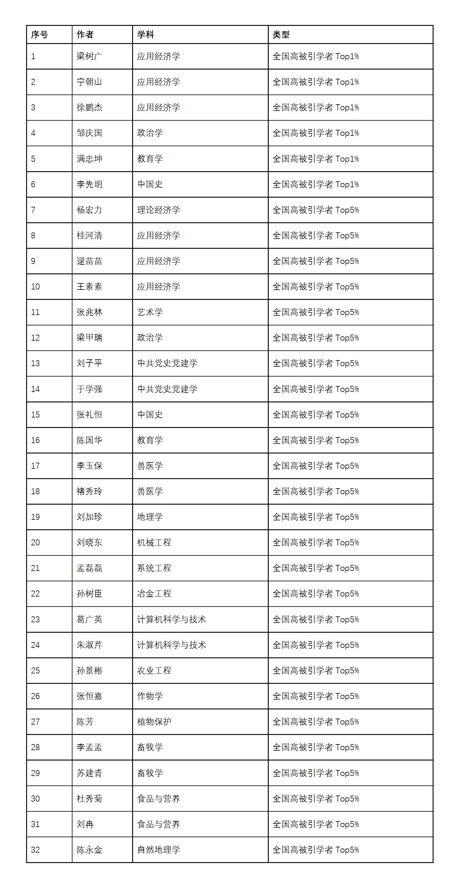 此次我校入选学者涵盖应用经济学、政治学、教育学、中国史、机械工程、计算机科学与技术、农业工程等学科,彰显我校在多个学科领域的研究实力和学术影响力。下一步,学校将继续通过优化科研环境、加强团队建设、促进跨学科合作等多种方式,为学者们提供良好的发展平台和支持体系。