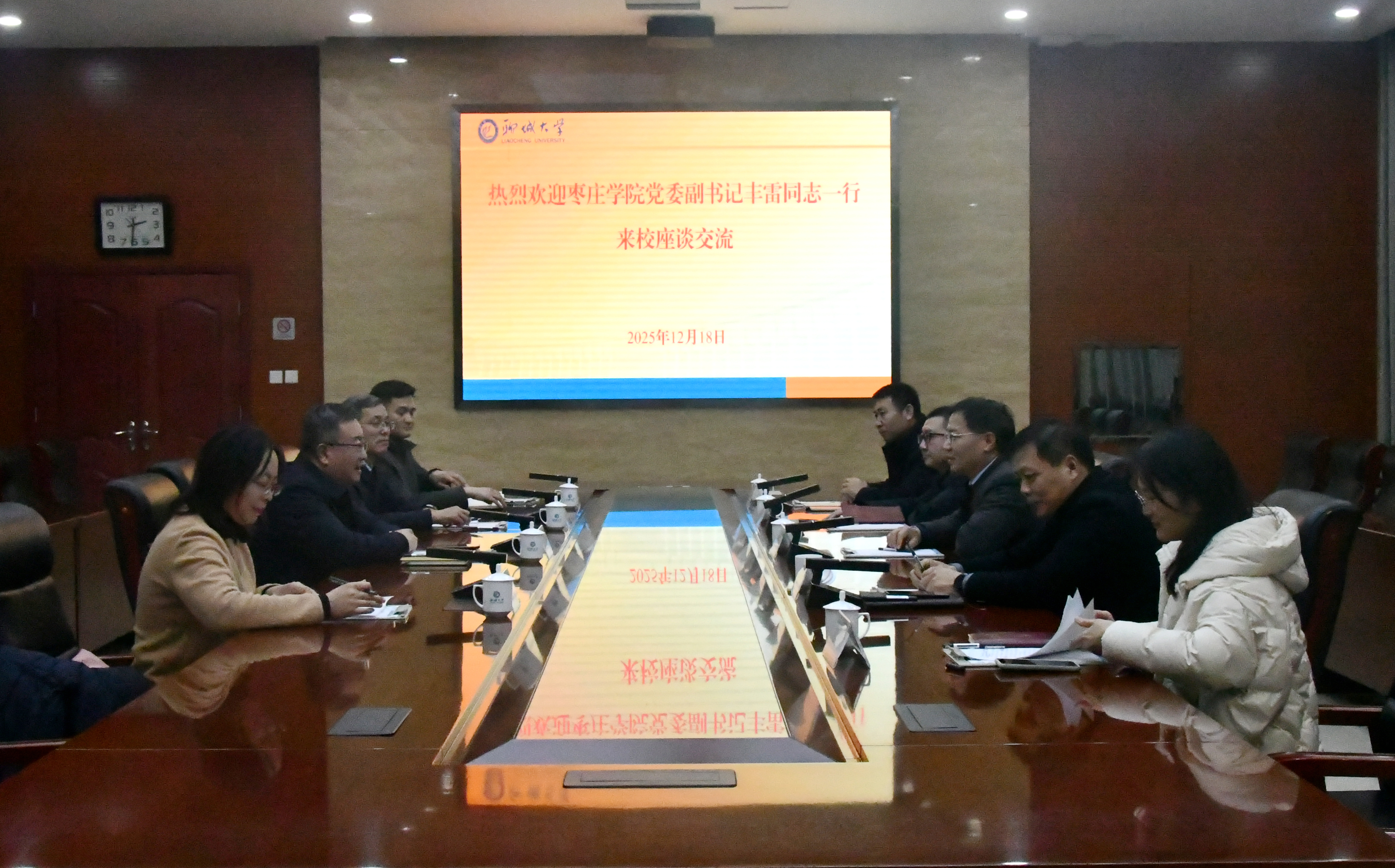12月18日,枣庄学院党委副书记丰雷同志一行4人来校就学生工作开展座谈交流。我校党委常委、副校长苏明海出席会议。学生工作处相关负责人陪同座谈。