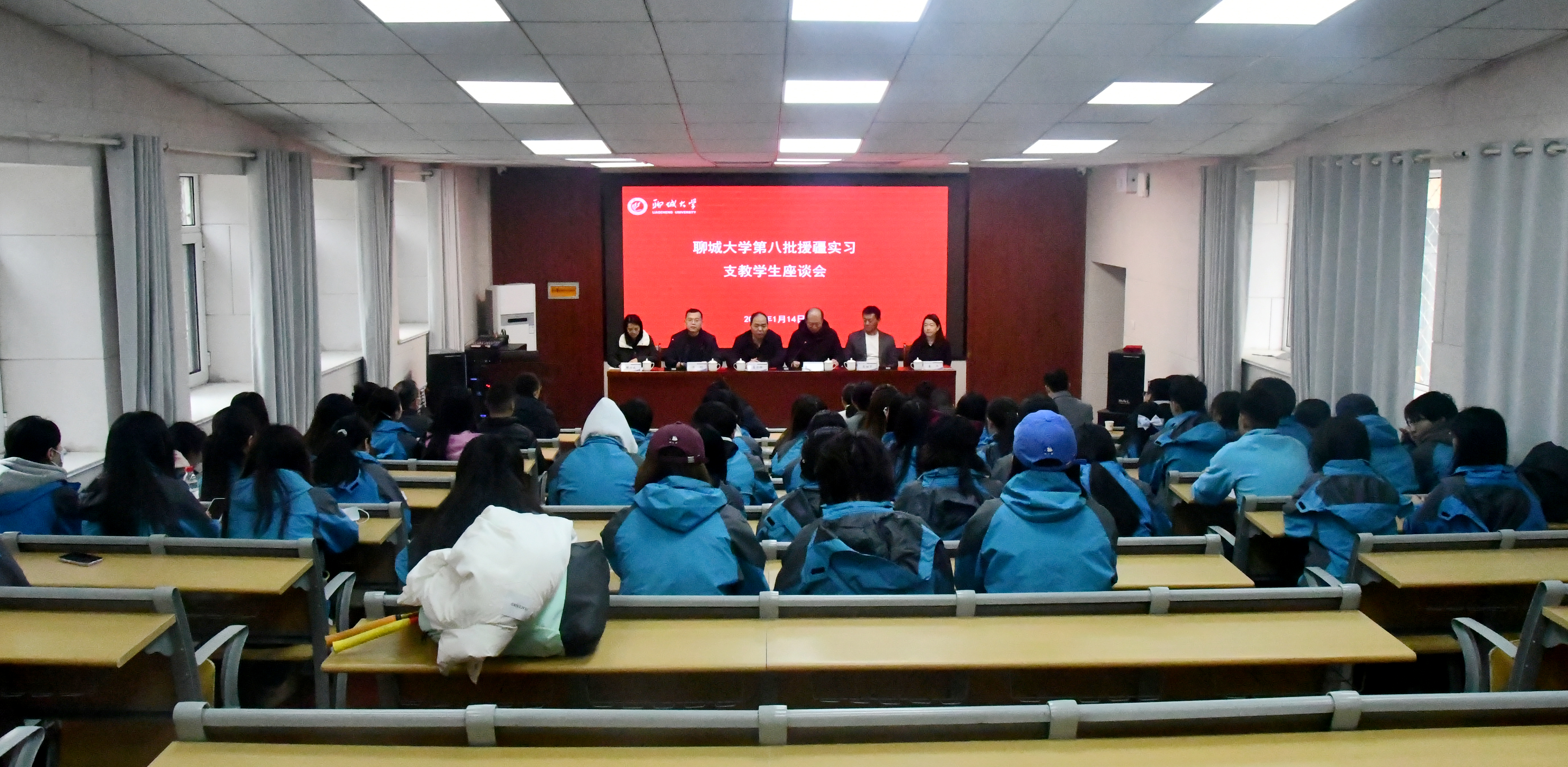 1月14日,我校召开第八批援疆支教实习生座谈会。我校党委常委、副校长李华锋出席座谈会,校团委、学生工作处、教务处、带队教师及50名援疆支教生参加会议。